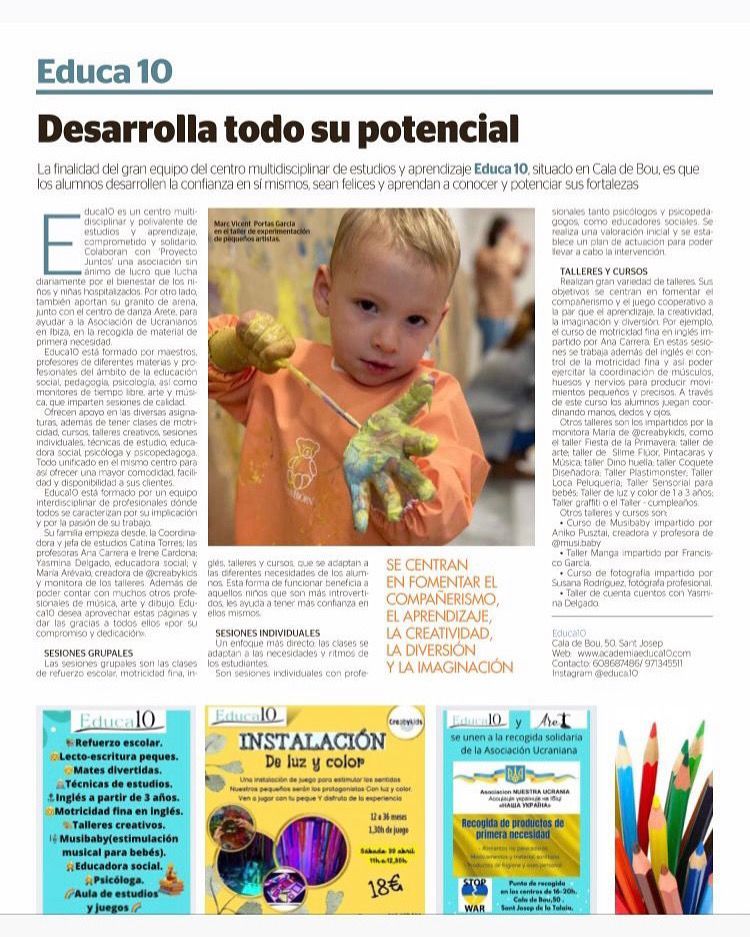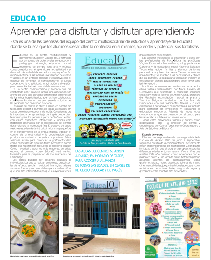 El principal objetivo del equipo de Educa10 es que los alumnos desarrollen la confianza en sí mismos, sean felices y aprendan a conocer y potenciar sus fortalezas. Apostamos por una educación en la que se aumente la probabilidad de que solo suceda aquello que queremos o creemos y dónde aprender se convierta en una aventura de experiencias, conocimientos y diversión desde un punto de vista educativo.